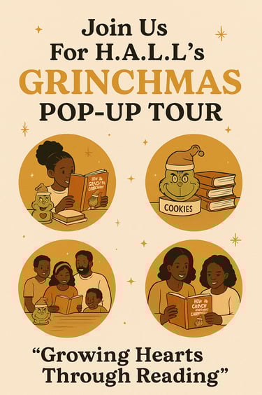 Keep the magic of the season alive with a relaxing literacy pop-up the whole family can enjoy. Guests receive bookmarks, stickers, cookies, and a fun Christmas craft activity. Our holiday story corner features favorites like If You Give a Mouse a Cookie and The Grinch, offering families a peaceful moment to read together. Attendees can browse new book suggestions, pick up simple reading tips, and learn how H.A.L.L. provides a nurturing environment for lifelong learners. Informational resources will be available for anyone interested in supporting BookClub Pop Events or Adopt-A-Reader.